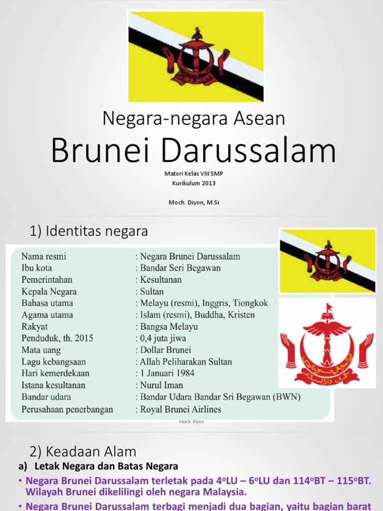 Tapi di brunei darussalam menggunakan konsep melayu islam beraja ( mib ) dalam kurikulum sekolahnya. Kurikulum di brunei darussalam : Model kurikulum di brunei darussalam 5.1 visi, misi, matlamat objektif kurikulum pelajaran ugama. Struktur pendidikan dan sistem sekolah. Pendidikan kebangsaan negara brunei darussalam adalah usaha yang berterusan bersumber ilmu naqli dan `aqli ke arah memperkembangkan potensi individu serta menyeluruh bagi melahirkan insan berilmu, beriman, beramal, berkepandaian, bertaqwa, amanah, bertanggungjawab serta berakhlak mulia.